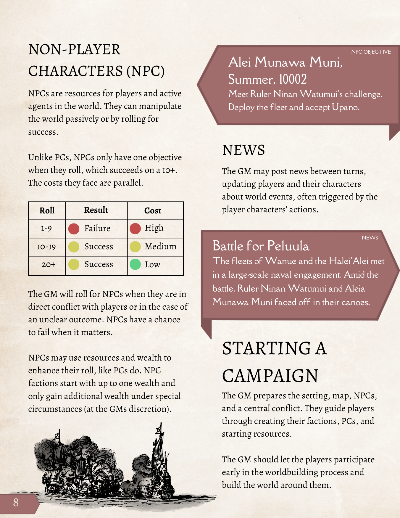 This game's about story, diplomacy, and fantasy politics. It's about making risky rolls and facing the consequences.